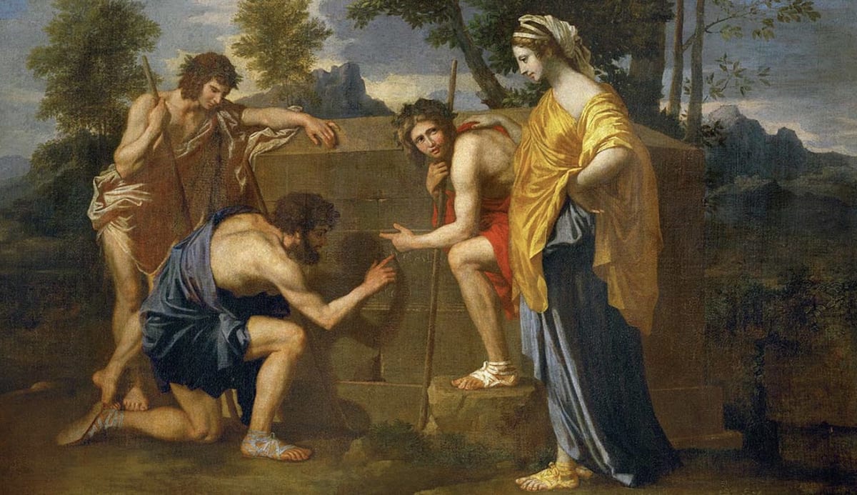 He started at me, “You Greeks think everything has to do with you. Poussin’s painting has nothing to do with Greece, he painted it in, and it represents Arcadia, France.”